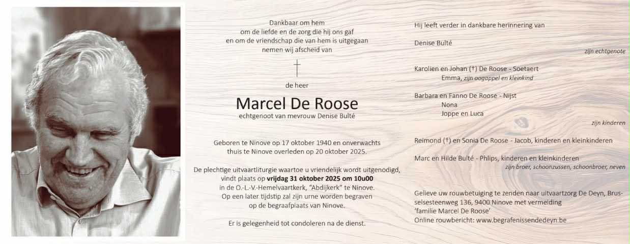 Overlijden Marcel De Roose